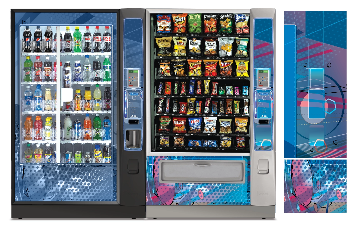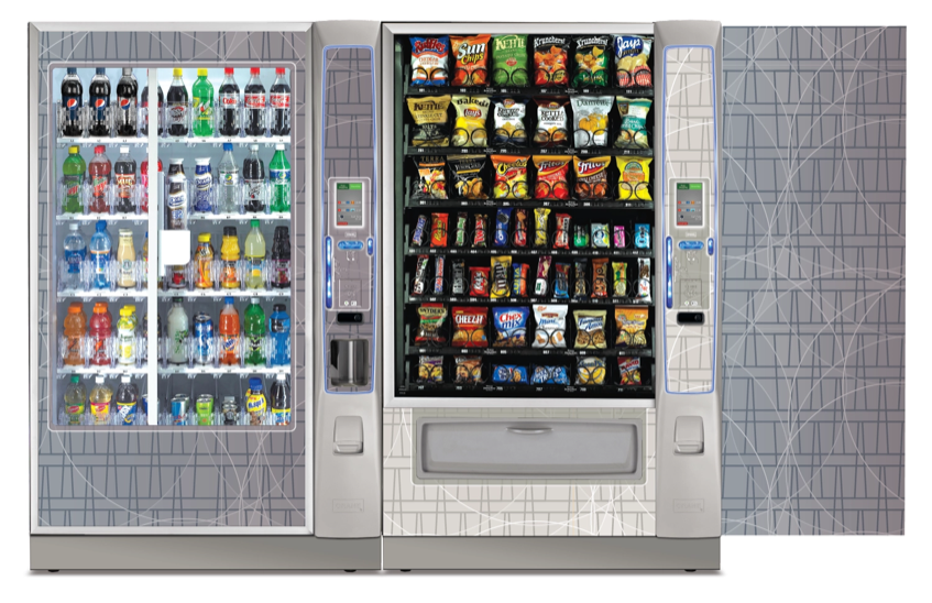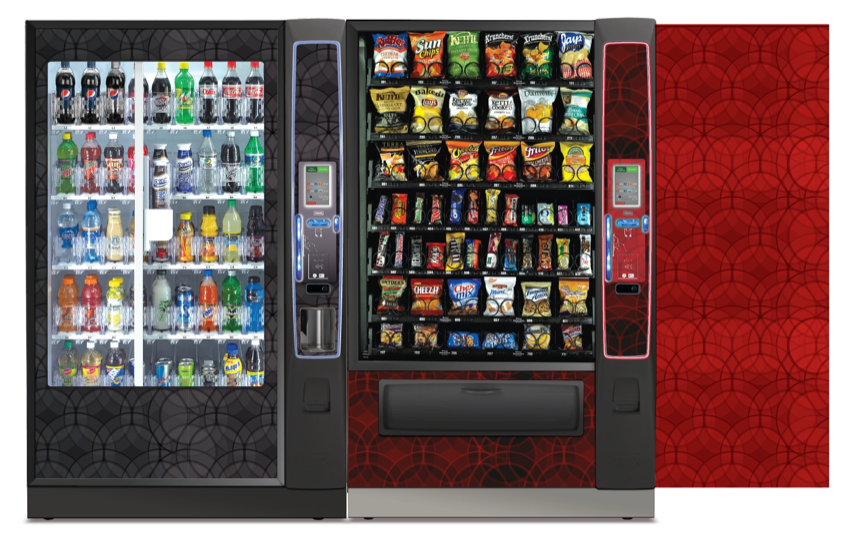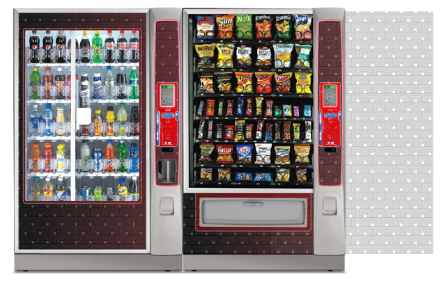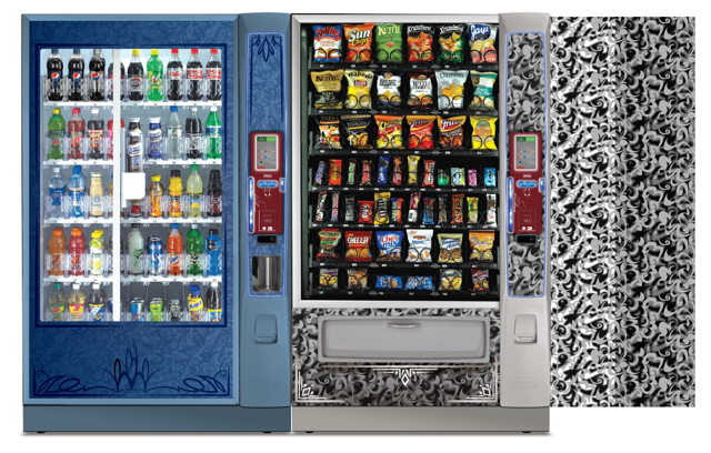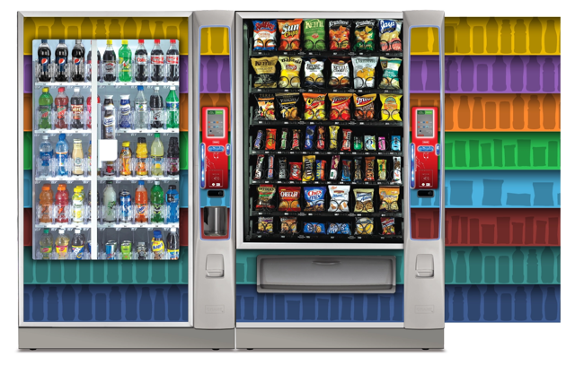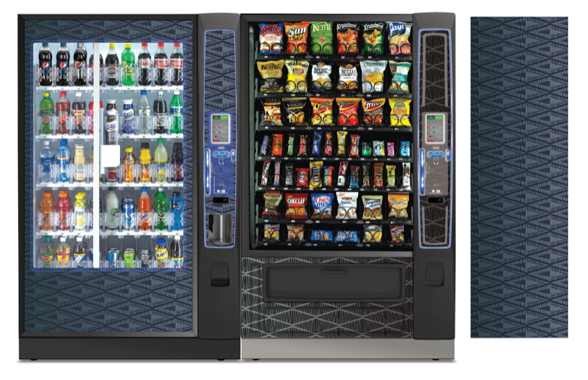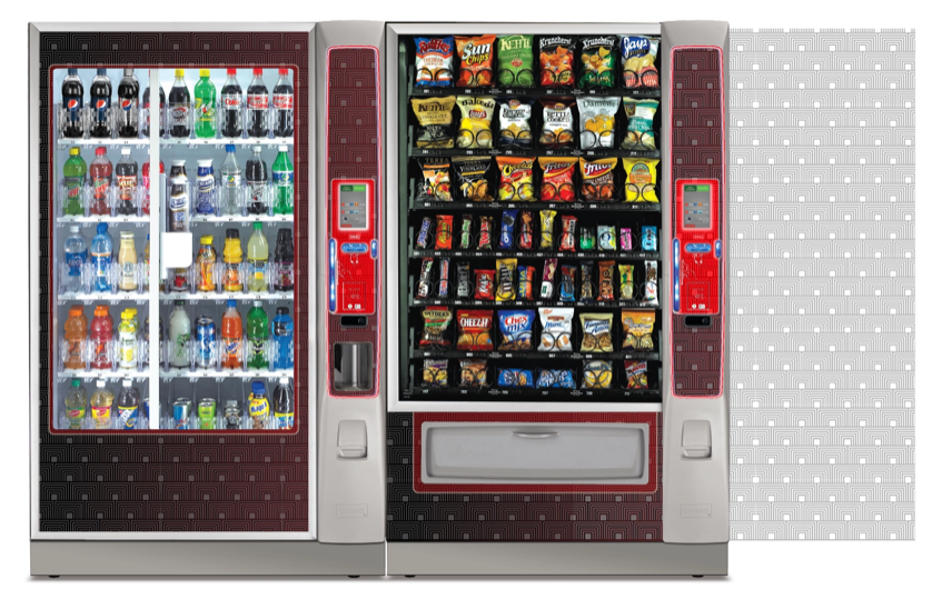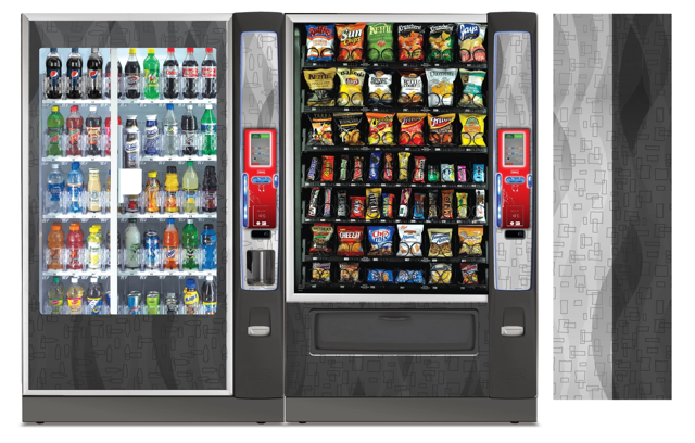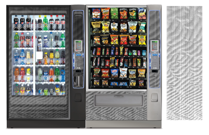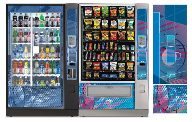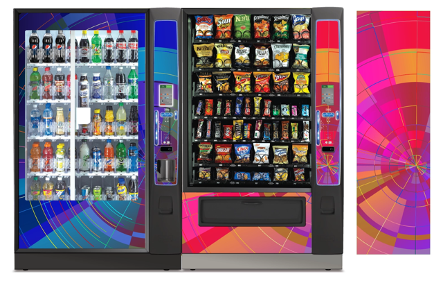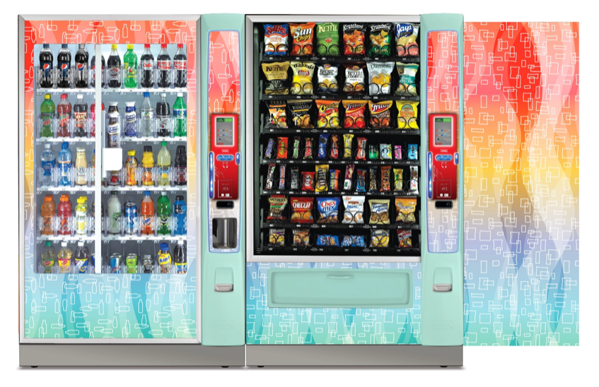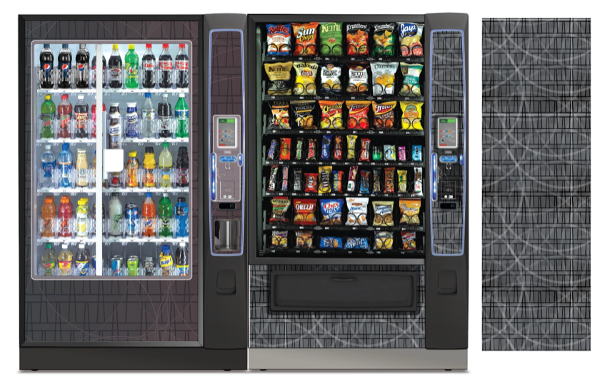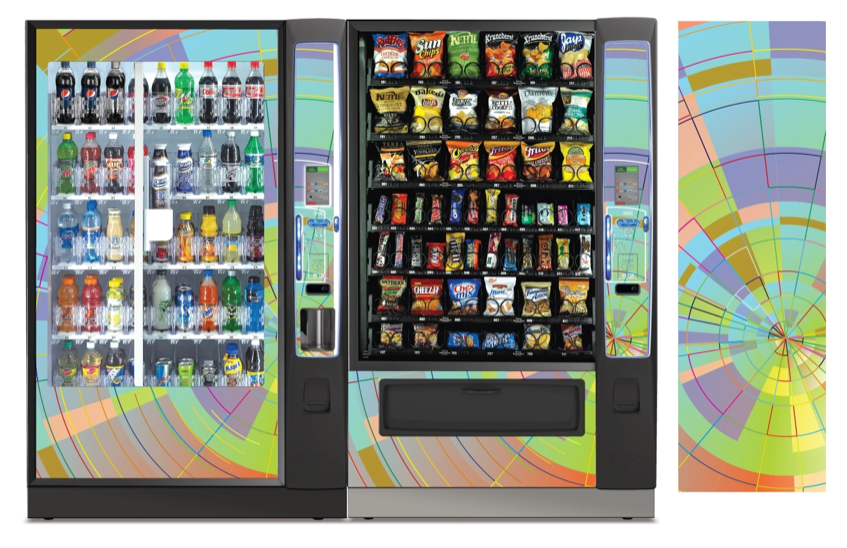 Create a collection of vending machine graphics that suit a spread of location environments and industries as options to choose from when graphics are not provided by the buyer. Implement color, saturation, textures, line, and tones to provide a diversity of visual solutions.