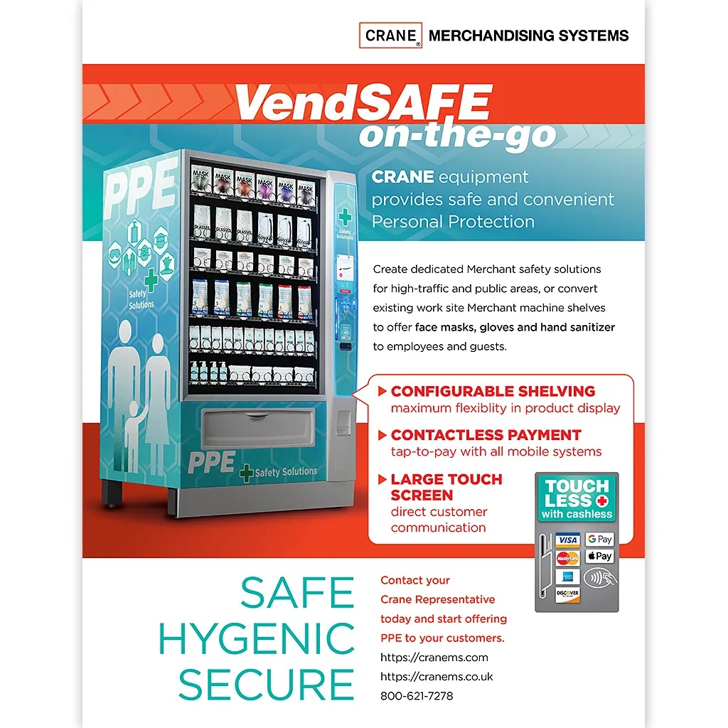 Crane Merchandising needed a complete brand package for a PPE (personal protection equipment) vending machine. Development needed to be prompt, given the broad and intense presence of Covid-19 and the likelihood that competing manufacturers were developing similar machines.
