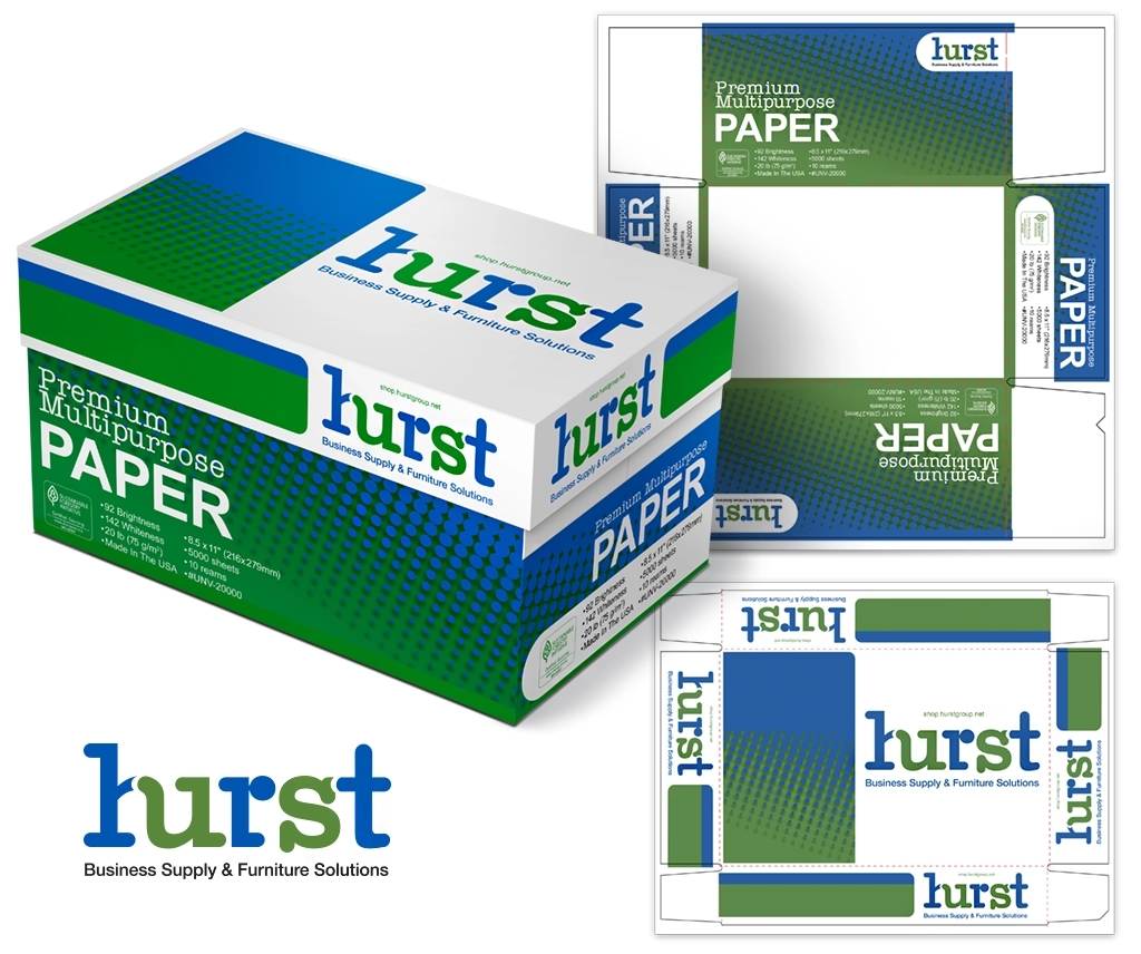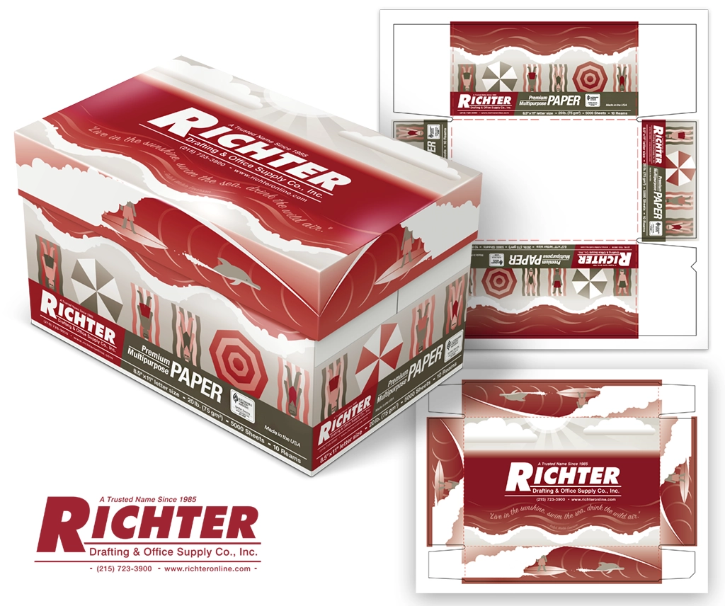 Utilize existing client graphics to develop custom office paper packaging designs for digital direct packaging printing. Provide client with flat sheet design proposals. Revise and develop to final mechanical file and 3D model for product rendering marketing asset.
